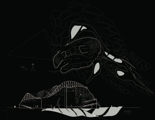 Seeking inspiration from living organisms the form begins to grow and take on the entirety of the site. Sprawling both horizontally and vertically, the porous skin allows for the programs to intermingle with each other, creating a discourse among disciplines while the skeletal structure drapes and formulates the overall expanse of the project.
